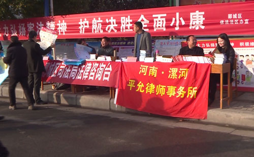 當(dāng)天上午九點(diǎn)多鐘,記者在郾城區(qū)黃河廣場看到,大量的法律宣傳版面和橫幅已經(jīng)擺放和懸掛完畢,來自郾城區(qū)各單位的工作人員在宣傳現(xiàn)場為過往市民發(fā)放法律知識宣傳頁。除此之外,宣傳法制的書畫展和新編法制現(xiàn)代戲《借款協(xié)議》也吸引了廣大市民群眾駐足觀看。