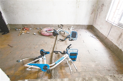 12月21日中午,記者來(lái)到市區(qū)漢江路與太行山路交叉口東北角的一處城中村,見三輛共享單車所在的民房垃圾遍地,一床破舊的鋪蓋堆放在一個(gè)房間里。被拆解的兩輛共享單車,在二樓的一個(gè)房間內(nèi),車輪不見了,車鎖也被破壞。