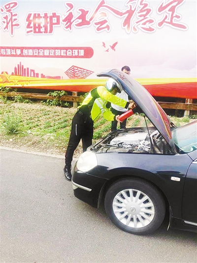 “看到他的車著了火,我就帶著摩托車上的滅火器和同事陳凱一起趕了過(guò)去。將火撲滅后,又把電瓶線拆掉,防止危險(xiǎn)發(fā)生。”市交警支隊(duì)秩序管理大隊(duì)騎警中隊(duì)騎警陳彬說(shuō),事發(fā)時(shí),他和同事陳凱正在附近執(zhí)行任務(wù)。