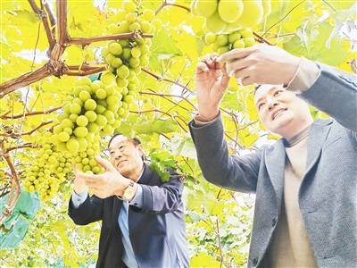 “我們采取訂單化種植模式,今年累計種植優(yōu)質(zhì)陽光玫瑰葡萄170余畝,畝產(chǎn)6000斤以上,每畝平均毛利潤超過3萬元。”葡萄產(chǎn)業(yè)園負責人盛鵬介紹說,為打開市場、確保收益,在葡萄掛果初期,他就和廣東百果園等企業(yè)簽訂了收購協(xié)議。葡萄成熟后供不應(yīng)求,收購商直接安排人員入園收購。