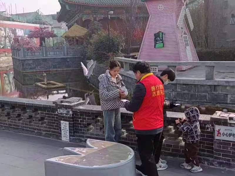 龍年春節(jié),在 河上街景區(qū)志愿者開啟新的一年文明宣傳活動。
