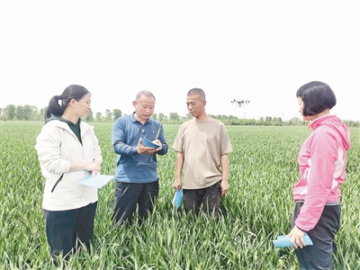 不遠處的田間道路上,市農(nóng)科院植保所所長、省小麥體系漯河綜合試驗站站長、省優(yōu)秀科技特派員李世民等專家被一群農(nóng)戶圍著,大家你一言我一語向他們請教各種農(nóng)藥的噴施要點。無人機運送車上,放置著防治赤霉病、蚜蟲等病蟲害的農(nóng)藥,還有促進小麥灌漿的氨基酸等各種肥料。