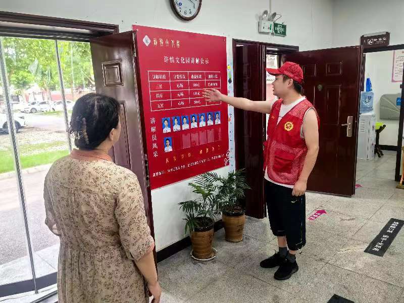 7月20日,許慎文化園,這位志愿者正在給游客文明講解。