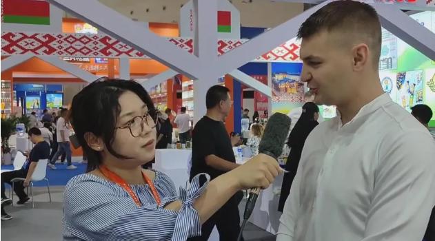在白俄羅斯的展區(qū)前,記者通過中方的翻譯,在待等了一段不短的時間后,終于采訪了一直忙碌交流的、來自白俄羅斯莫吉廖夫州自由經(jīng)濟區(qū)比霍夫罐頭廠有限責任公司的代表維塔利先生。