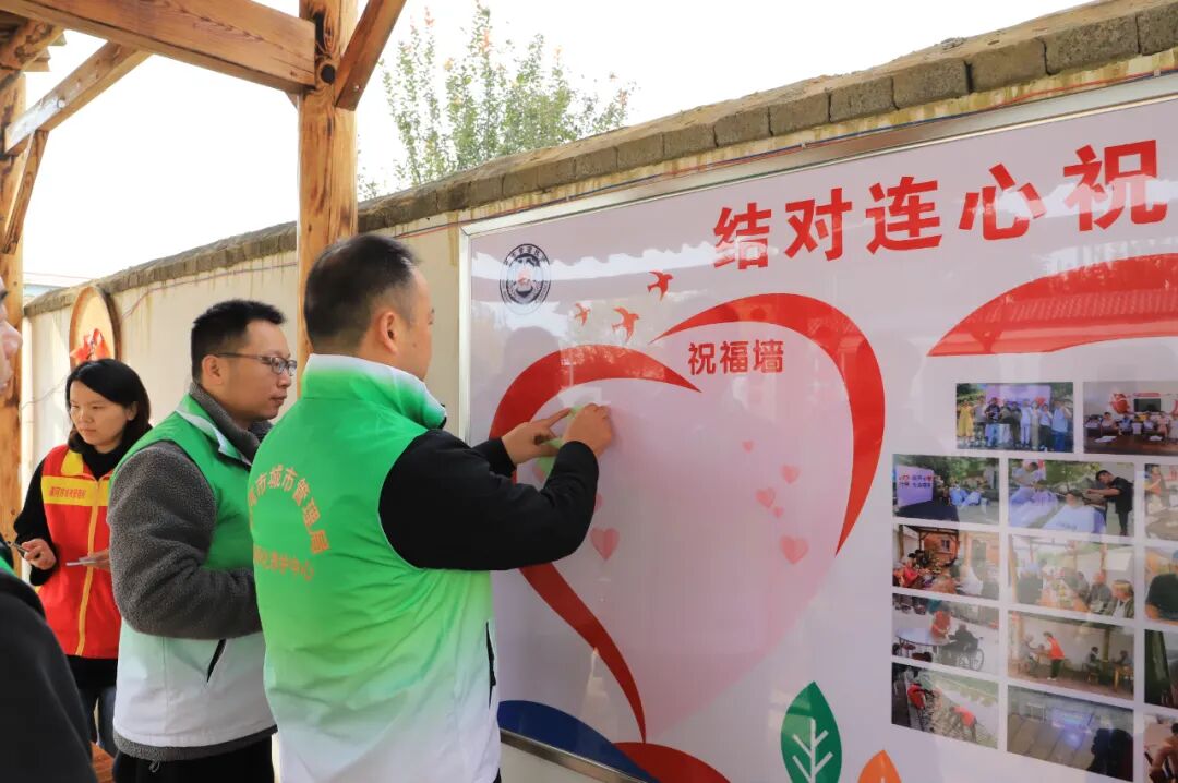 “駐村不僅是駐在村里,更要駐進(jìn)老百姓心里,把溫暖送到村民心坎上。”駐村第一書記趙基元站在“結(jié)對(duì)連心祝福墻”旁道出活動(dòng)初衷,身后的墻上,他與志愿者們寫下一張張心愿卡片:“愿潘牛村愈發(fā)美麗,村民們健康長壽”。