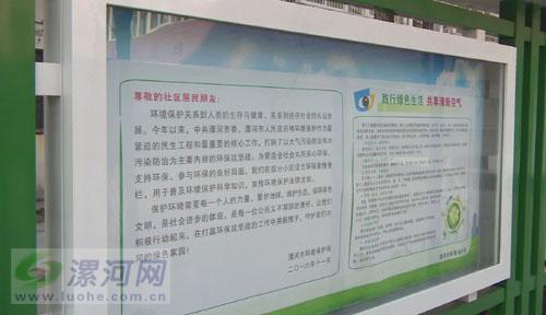 據(jù)了解,今年8月份以來,市環(huán)保局就策劃開展了“環(huán)保進(jìn)萬家”社區(qū)宣傳活動。市環(huán)保局在郾城區(qū)、源匯區(qū)、召陵區(qū)、經(jīng)濟(jì)技術(shù)開發(fā)區(qū)、城鄉(xiāng)一體化示范區(qū)和西城區(qū)各選擇2個居民小區(qū),組織開展社區(qū)環(huán)保宣傳。在選定的小區(qū)內(nèi)設(shè)置固定環(huán)保宣傳欄,定期更換內(nèi)容,開展環(huán)??破罩R宣傳、生態(tài)文明宣傳。在小區(qū)內(nèi)擺放宣傳版面,向居民宣傳展示全市污染防治工作進(jìn)展、環(huán)保法律法規(guī)、綠色環(huán)保理念及日常環(huán)保小知識。