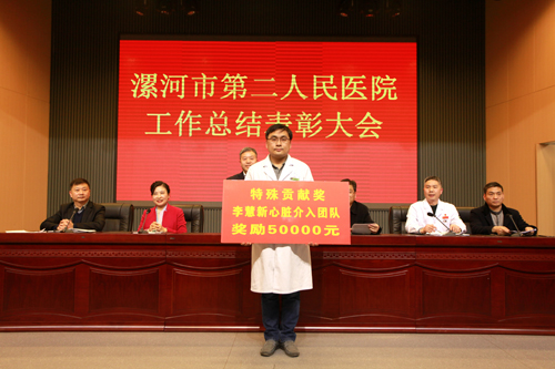 隨后表彰了2017年度先進(jìn)集體和先進(jìn)個(gè)人以及榮獲上級部門榮譽(yù)稱號個(gè)人,而含金量最高、最為榮耀,備受該院全院員工矚目的“特殊貢獻(xiàn)獎(jiǎng)”李慧新及心臟介入中心團(tuán)隊(duì)作為壓軸大獎(jiǎng)?lì)C發(fā)。