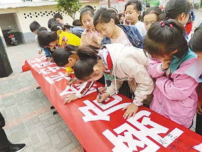志愿者用一個(gè)個(gè)實(shí)例、一組組數(shù)據(jù),向?qū)W校師生和家長(zhǎng)講解防溺水安全知識(shí),提醒學(xué)生們“遠(yuǎn)離危險(xiǎn)水域”。隨后,全校師生一起莊嚴(yán)宣誓:珍愛(ài)生命,預(yù)防溺水,遠(yuǎn)離危險(xiǎn),平安成長(zhǎng)。學(xué)生們還認(rèn)真地在紅色條幅上簽名,表達(dá)“絕不一個(gè)人下水游泳”的決心。