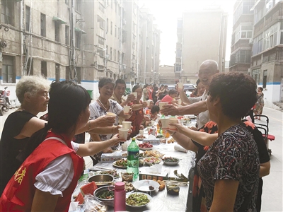在一片歡聲笑語(yǔ)中,居民們?cè)谝黄鸲冗^(guò)了晚餐時(shí)間,桌子上幾乎所有的菜都被吃完。“這才是家常便飯,今天這頓飯吃得得勁。”活動(dòng)臨近結(jié)束,不少居民端著自家的空盤子,高興地說(shuō)。