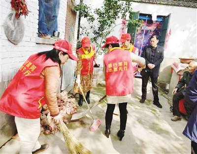 郾城區(qū)市場發(fā)展服務(wù)中心志愿者到孟廟鎮(zhèn)杜李村看望慰問貧困戶 幫忙打掃院內(nèi)衛(wèi)生