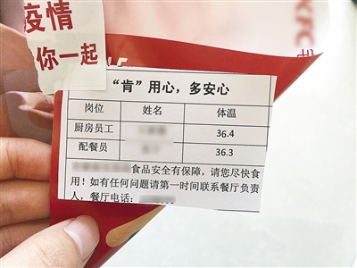 (記者 李林潤(rùn))菜品制作人是誰(shuí)?配餐員是誰(shuí)?他們今日的體溫是多少?近日,不少市民發(fā)現(xiàn),在打包食品的袋子上或者外賣軟件上,附有一張“安心卡”,讓人看了心里特別踏實(shí)。