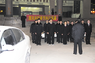1月22日,天剛蒙蒙亮,市中級(jí)人民法院的執(zhí)行人員便到法院集合了。6點(diǎn)整,市中級(jí)人民法院辦公樓前,警燈閃爍,20名執(zhí)行干警整裝待發(fā)。簡(jiǎn)短的儀式后,市中級(jí)人民法院“春節(jié)執(zhí)行風(fēng)暴”專項(xiàng)活動(dòng)拉開帷幕。在市中級(jí)人民法院黨組成員、執(zhí)行局長(zhǎng)黨繼紅的統(tǒng)一指揮下,該院執(zhí)行局兵分兩路開始行動(dòng)。