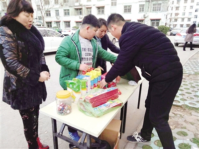 “叔叔,阿姨,我把俺們家的煙花爆竹拿來了。”住在小區(qū)里的小學(xué)生萬若宇在家人的幫忙下,拎來了幾掛鞭炮。“今年放寒假前,老師給我們說了,春節(jié)期間市區(qū)禁放鞭炮,讓我們過一個(gè)環(huán)保年。”萬若宇說,放鞭炮不僅污染空氣,對小孩子來說還不安全,所以聽說社居委搞“兌換鞭炮”活動(dòng)后,他積極參與。上交完鞭炮后,他從社居委提供的洗滌劑、紙杯子、還有各種玩具中挑選了自己喜歡的禮品。