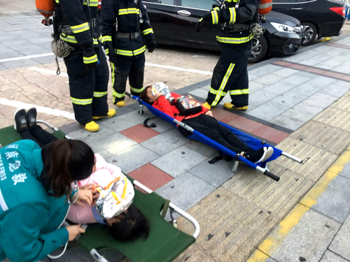 在演練總指揮發(fā)出“突發(fā)火災(zāi)應(yīng)急演練開(kāi)始”的指令后,應(yīng)急救援演練拉開(kāi)帷幕。市二院急診科接到火災(zāi)報(bào)警電話后,迅速啟動(dòng)突發(fā)事件醫(yī)療急救應(yīng)急預(yù)案,進(jìn)入應(yīng)急狀態(tài)。急診科主任李劍穎帶領(lǐng)住院醫(yī)師張蓓蓓、主管護(hù)師張靜以及救護(hù)車司機(jī)馮河林接到調(diào)度電話立即帶著急救藥品、器械,趕赴現(xiàn)場(chǎng)。在消防隊(duì)員將傷員轉(zhuǎn)移到安全地帶后,迅速檢查了3名傷員的受傷情況,按照檢傷分類要求,進(jìn)行現(xiàn)場(chǎng)救治,快速給予傷員吸氧,并安撫受傷人員。隨后,傷者被送上救護(hù)車,安全轉(zhuǎn)運(yùn)到醫(yī)院進(jìn)一步治療。7時(shí)10分,整場(chǎng)演練順利結(jié)束。