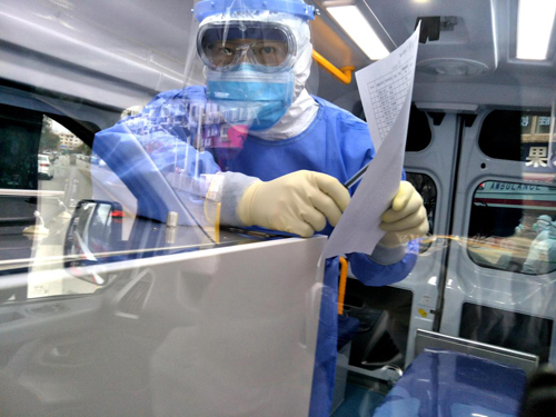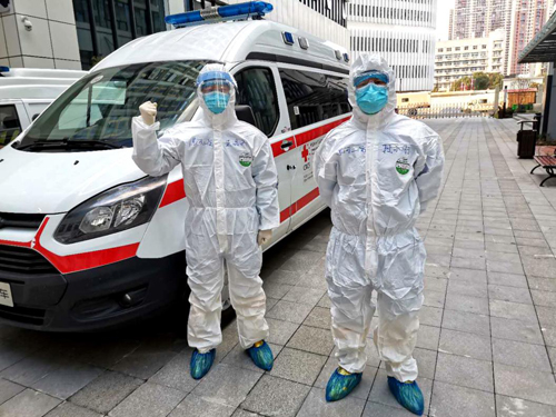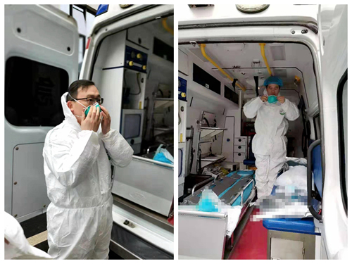 市二院醫(yī)療急救運轉隊是2月5號到達武漢,經過兩天的緊張集訓,今天他們就要開始接到首次急救運轉任務。“第一次經歷如此重大的戰(zhàn)斗,會緊張、有壓力。”市二院轉運醫(yī)療隊的隊員們深知,每一次轉送任務就是離危險更近一步,但沒有一個人打退堂鼓,大家相互鼓勵打氣,克服了許多難以想像的困難。執(zhí)行任務,穿上密不透氣的防護服,一穿就是幾個小時,衣服濕了又干干了又濕。因為怕上廁所,不敢喝水,回來后要經過嚴格的車輛和個人消毒處理,忙活完,大家累得都吃不下飯。