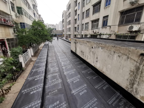 ▲市住建局分包“三無樓院”治理實景。(非機(jī)動車庫屋頂防水)