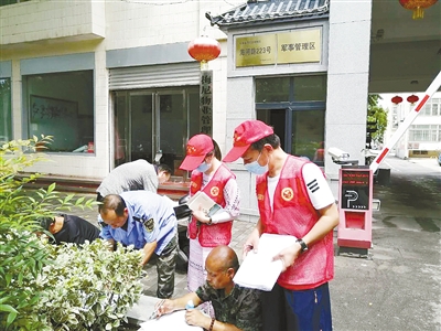 志愿者走進小區(qū)開展創(chuàng)文調(diào)查。