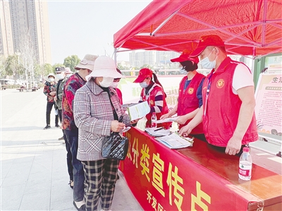 在“我為黨旗增輝”主題活動中,我市各單位積極行動,開展了豐富多彩的志愿服務(wù)活動。市婦聯(lián)開展了學(xué)雷鋒志愿服務(wù)活動,為市民免費(fèi)理發(fā)、磨刀、發(fā)放防走失黃手環(huán)等;市科協(xié)組織農(nóng)業(yè)專家深入臨潁縣王崗鎮(zhèn)滕寺村、繁城回族鎮(zhèn)雙路姚村,普及農(nóng)業(yè)知識,傳授種植技術(shù);市圖書館的志愿者走進(jìn)夕陽紅老年公寓,為老人們送去養(yǎng)生類報紙和生活用品,并幫助打掃衛(wèi)生;郾城區(qū)人民檢察院的志愿者到裴城鎮(zhèn)寨子村,捐贈防疫物資,向村民普及法律知識……