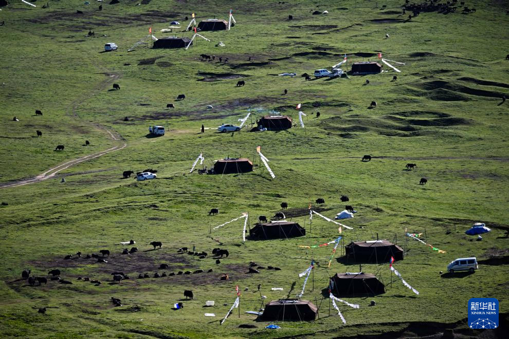 這是7月31日在青海省果洛藏族自治州達日縣吉邁鎮(zhèn)普忙村拍攝的牧民的夏季草場。