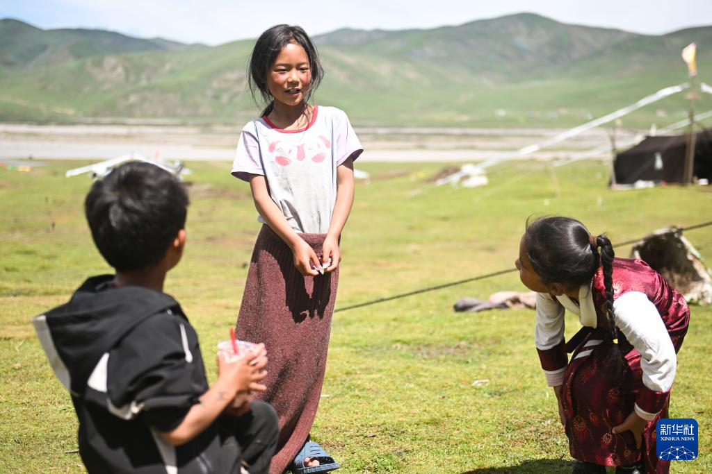8月1日,尕瑪拉毛(右一)與小伙伴在玩耍。