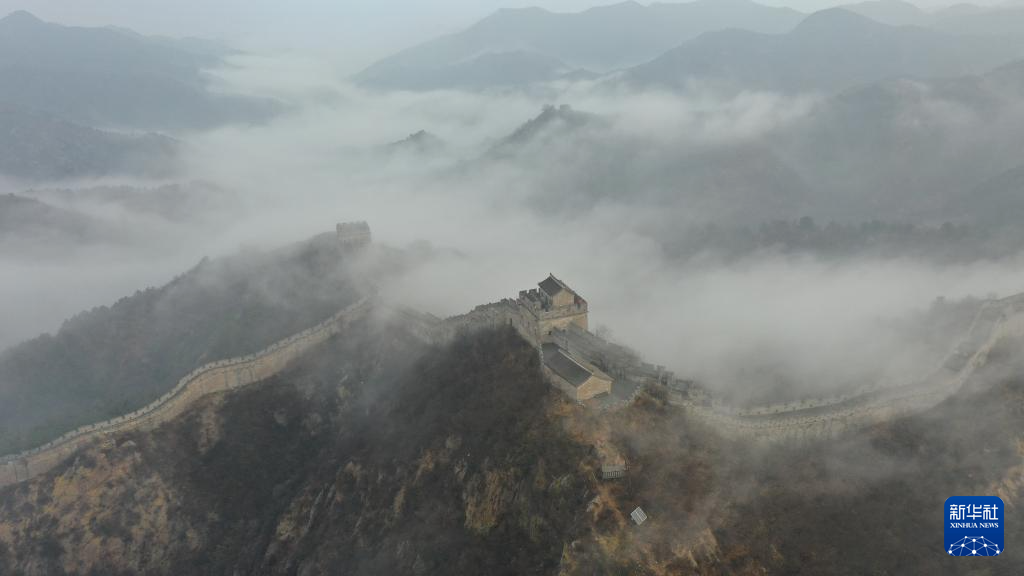 這是11月14日清晨在河北省承德市灤平縣拍攝的金山嶺長(zhǎng)城云霧景觀(無人機(jī)照片)。
