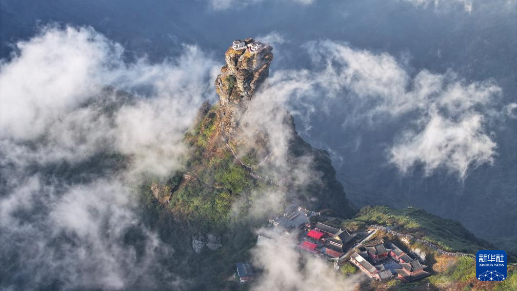 11月13日,在世界自然遺產(chǎn)地貴州梵凈山景區(qū)拍攝的云霧景觀(無人機(jī)照片)。
