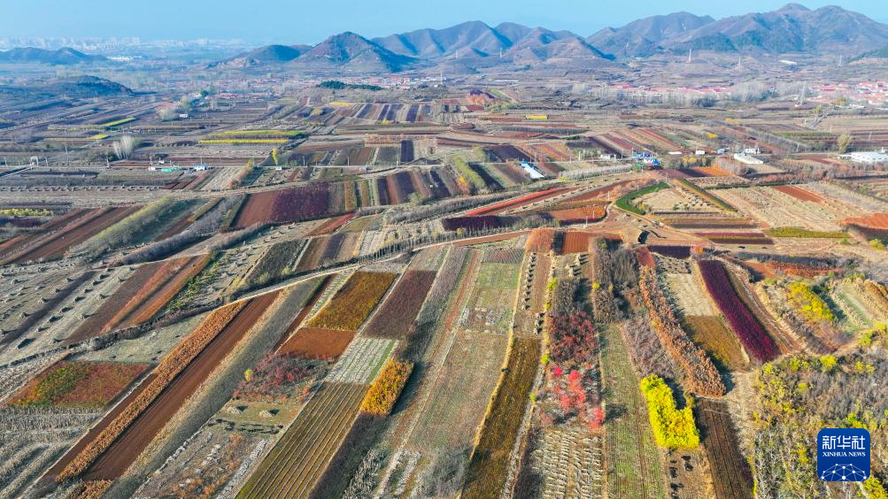 11月14日在河北省遵化市新店子鎮(zhèn)拍攝的初冬景色(無人機(jī)照片)。