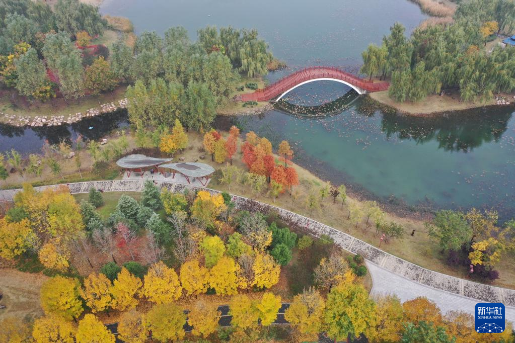 11月14日在河南省焦作市溫縣子夏公園拍攝的景色(無人機(jī)照片)。