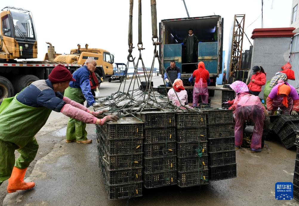 在莆田南日島海域碼頭,漁民剛收獲上岸大規(guī)格鮑魚,為春耕布網(wǎng)放苗做準(zhǔn)備(2月27日攝)。