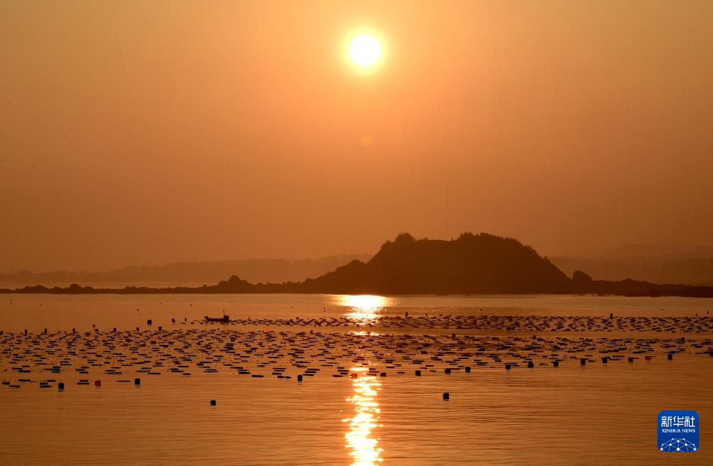 這是夕陽下的莆田南日島海域海上田園綜合體景色(2月27日攝)。