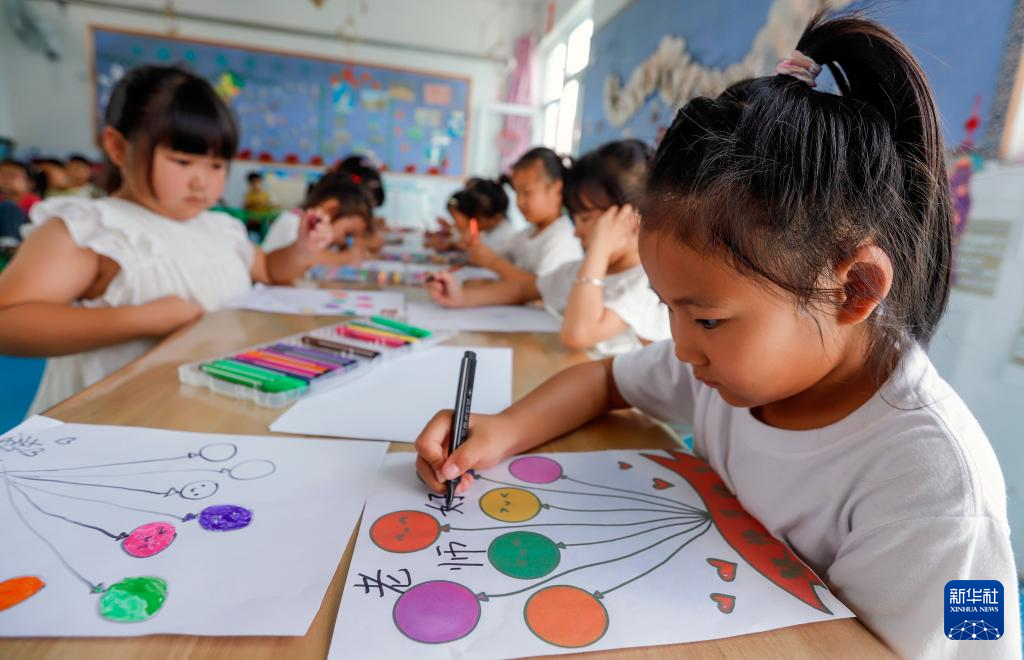 9月9日,河北省遵化市遵化鎮(zhèn)南關幼兒園的小朋友在繪制美術作品感念師恩。