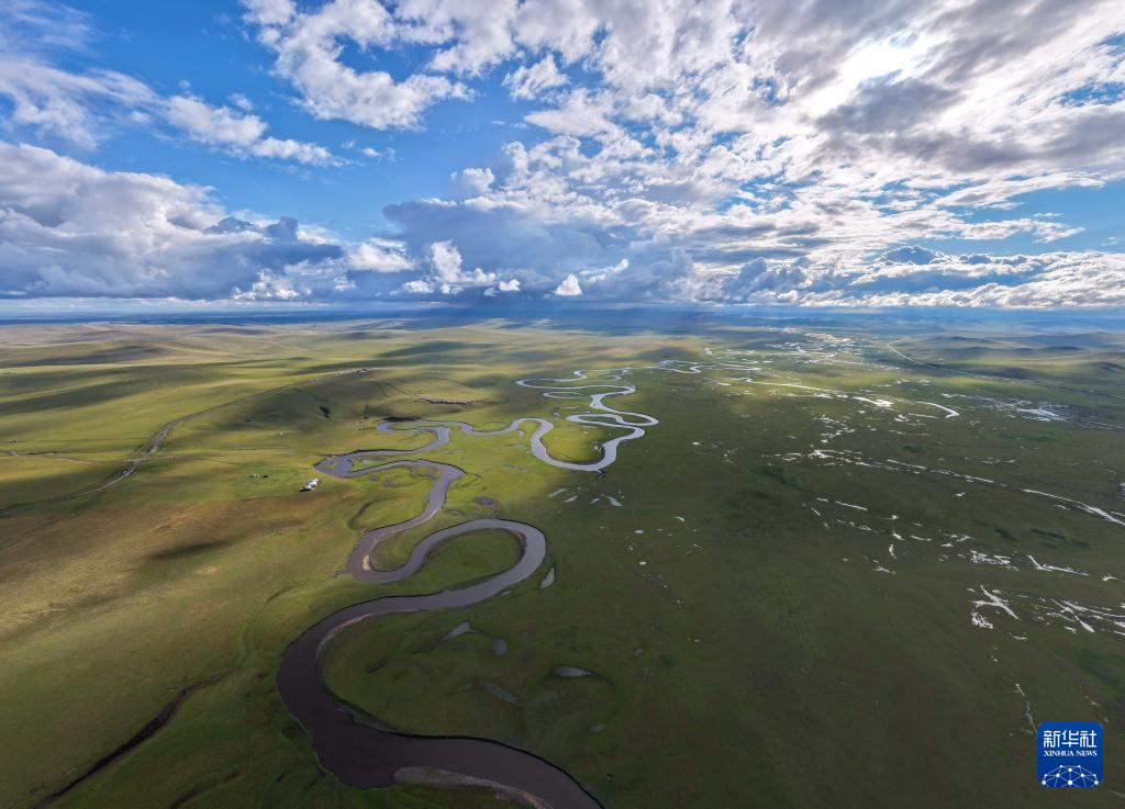 9月14日拍攝的內(nèi)蒙古呼倫貝爾市陳巴爾虎旗草原上的莫爾格勒河(無人機照片)。