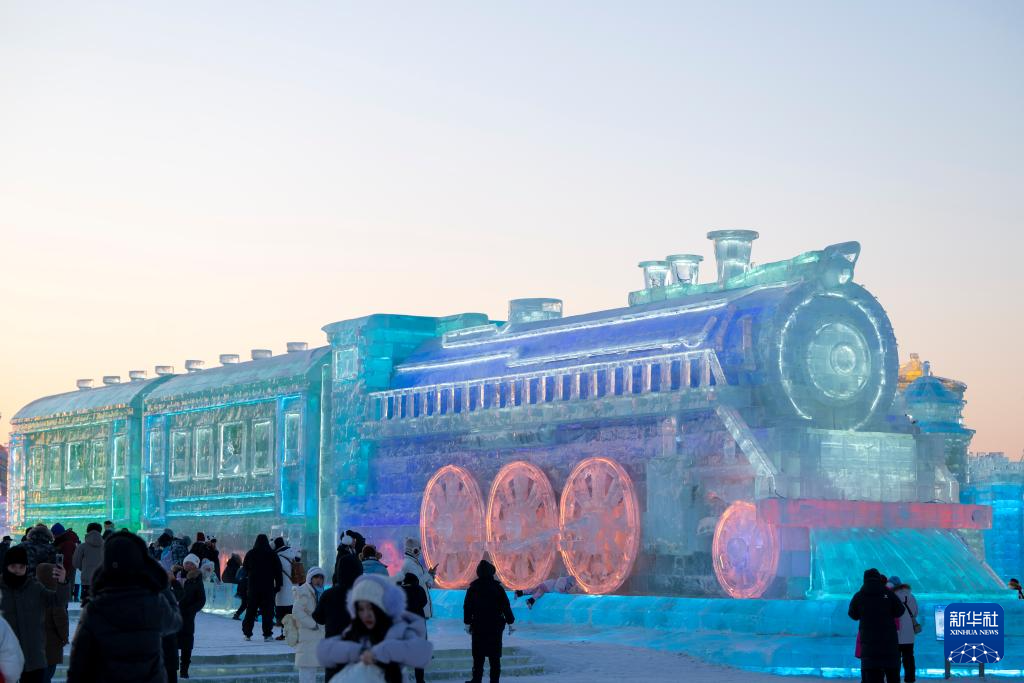 1月5日,游客在哈爾濱冰雪大世界園區(qū)游覽。