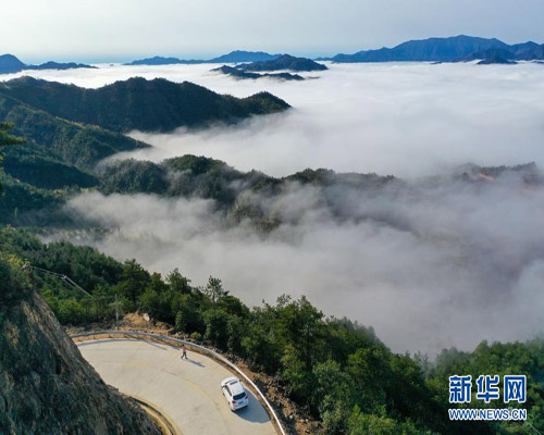 無人機(jī)航拍云端山路 蜿蜒深邃形