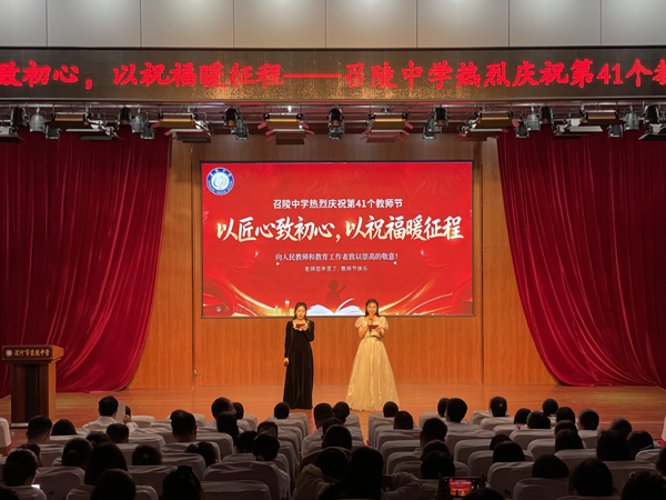 丹桂飄香滿校園,師恩如歌潤心田。2025年9月10日下午,召陵中學慶祝第41個教師節(jié)表彰大會在報告廳隆重舉行。全體師生齊聚一堂,以最真摯的敬意與熱烈的掌聲,致敬耕耘在教育一線的園丁,共同唱響“以教育家精神鑄魂強師,譜寫教育強國建設(shè)華章”的時代主旋律。