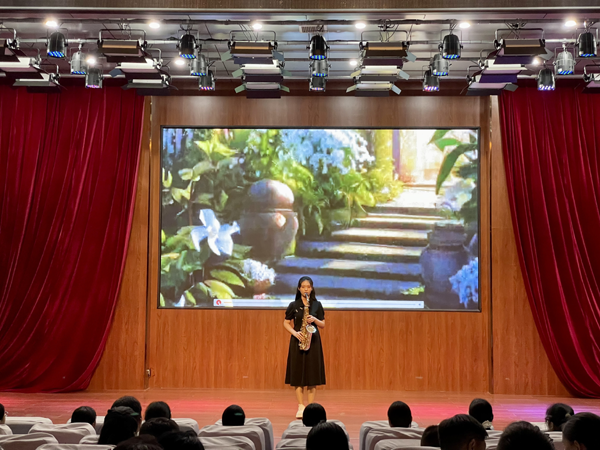表彰間隙,精彩的文藝表演為大會增添了溫馨氛圍。古箏合奏《聲聲慢》旋律悠揚,傳遞出師恩的綿長;舞蹈《傣風古韻》靈動雅致,展現(xiàn)出多元文化魅力;薩克斯獨奏《茉莉花》與歌曲《錦瑟》《春天的故事》輪番上演,用藝術(shù)的語言詮釋著對教師的祝福與敬意。